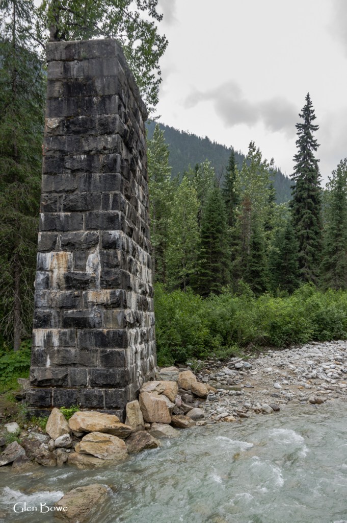 There is plenty to explore right from the campground including the ruins of an old chalet. Glacier House Lodge was a superb example of railway chalets not unlike those in Lake Louise and Banff, albeit smaller. This was a destination lodge for those seeking adventure. However the maintenance, such as snow clearing and maintaining snow sheds, was an ongoing burden for the railway. Rogers Pass took 200 lives over 30 years, due mainly to avalanches. The Canadian Pacific Railway constructed an eight kilometre tunnel under Mount MacDonald in order to bypass Rogers Pass (Connaught Tunnel). The original line that stopped at Glacier House Lodge was abandoned in 1916. The lodge tried to ferry people from the start of the new tunnel to the hotel but this solution was unpopular which resulted in fewer guests so the Glacier House Lodge closed in 1925 and was demolished in 1929 leaving nothing but the footings and an occasional boiler or other structure. This park and Roger Pass in general were rarely visited until 1963 when the TransCanada Highway opened and campgrounds were built in place of the lodge. These ruins are the starting point of the Asulkan Valley Trail that became our first hike in the park.